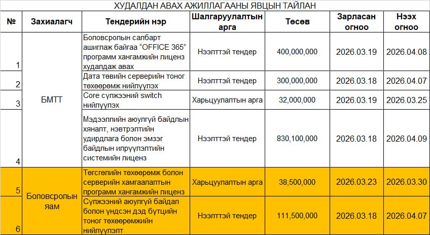 Худалдан авах ажиллагааны мэдээ